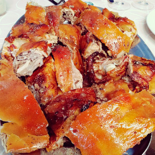 The crunchy skin is heaven for pork fans, revealing a layer of delicious and creamy fat beneath it. The meat is moist – always such a good sign of perfectly prepared pork. Parts of skin are covered in peppers and hot sauce, others are mild. Next to it comes a plate of potato chips and maybe a simple salad. Pork comes from Bairrada region and is considered to be the best in Portugal. Many places in Mealhada have their own preparation of meat, guaranteeing freshness and best quality. The meat is rubbed with garlic, pig fat, coarse salt and pepper and skewered on a roast pit before going into the oven for some two hours. The result is splendid roast that will for long stay a level marker of an excellent pork!